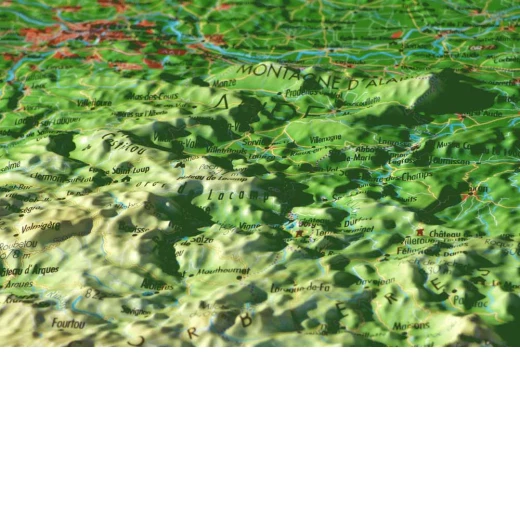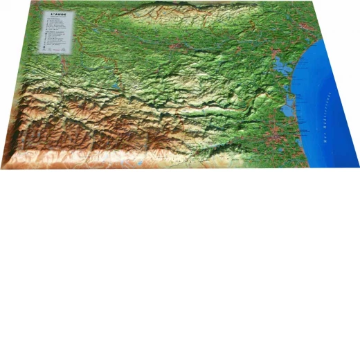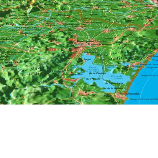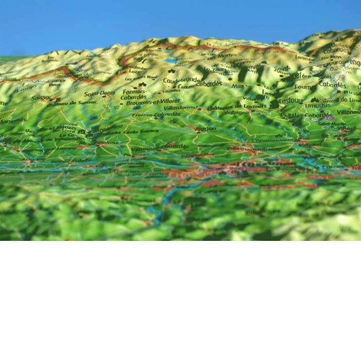Cette carte en relief 3Dmap de l’Aude s’adresse aussi bien aux randonneurs, qu'aux grimpeurs, skieurs et parapentistes ! Réalisée en France, la carte 3Dmap est un outil à usage récréatif et éducatif. Réalisée avec des procédés innovants et un logiciel de traitement 3D spécifique, cette carte de 41 cm x 61 cm est un excellent moyen de s’approprier le relief de l’Aude.