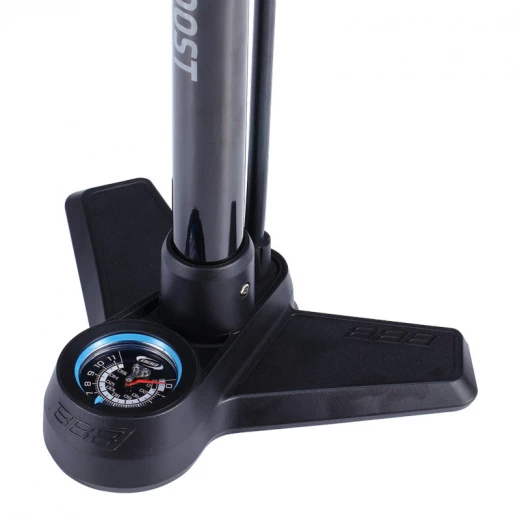 La pompe à pied AirBoost BFP-21 bénéficie d’un corps en acier bicolore et d’une base en matériau composite, le manomètre à aiguille assure une lecture précise grâce à une double lecture (en psi ou en bar) et peut aller jusqu‘à une pression de 9 bar.